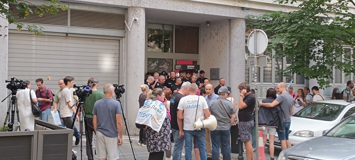 Iako sam video da je skup od 9:30, ja sam mislio da će početi tek u 10h i nema razloga da idem ranije, ali pre nego što sam ja došao ljudi su već probali da udju na sednicu i sukobili se sa obezbedjenjem. Dakle, na vratima broj 13 stojalo je privatno obezbedjenje sa natpisom Soko group a na vratima 15 stojala je interventna panduracija. Više ljudi je bilo kod vrata 13 pa sam tu i ja ostao.