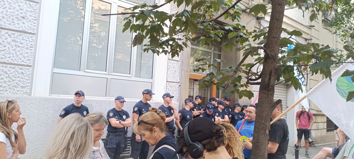 Na poziv ekologa (Ne damo Jadar + biološki faks; Eko straža se brčka na moru u Grčkoj) grupa ljudi se okupila ispred PKS (Privredna komora Srbije, dakle kapitalisti koji su ojadili narod od privatizacije 1993) u Resavskoj 13 i 15, malo veća zgrada ima dva ulaza, od 9:30h ujutru radi protesta protiv Ministarstva energetike koje od 10 do 12:30h ima sastanak koji su proglasili za lažnu javnu sednicu o planu to jest strategiji o mineralnim sirovinama od 2025 do 2040 sa produžetkom do 2050, dakle, prave plan kojim će da odrade posao za Vučića da lakše proda srpske prirodne resurse Rio Tintu, Kanadjanima ili sutra nekim desetima koji će da se pojave, jasno je da se radi o rasprodaji Srbije kolonijalnim kapitalistima da profitiraju a zauzvrat Vučiću tutnu neku lovu kao Što je Tinto već uradio a i Saudijci za BGD na vodi.