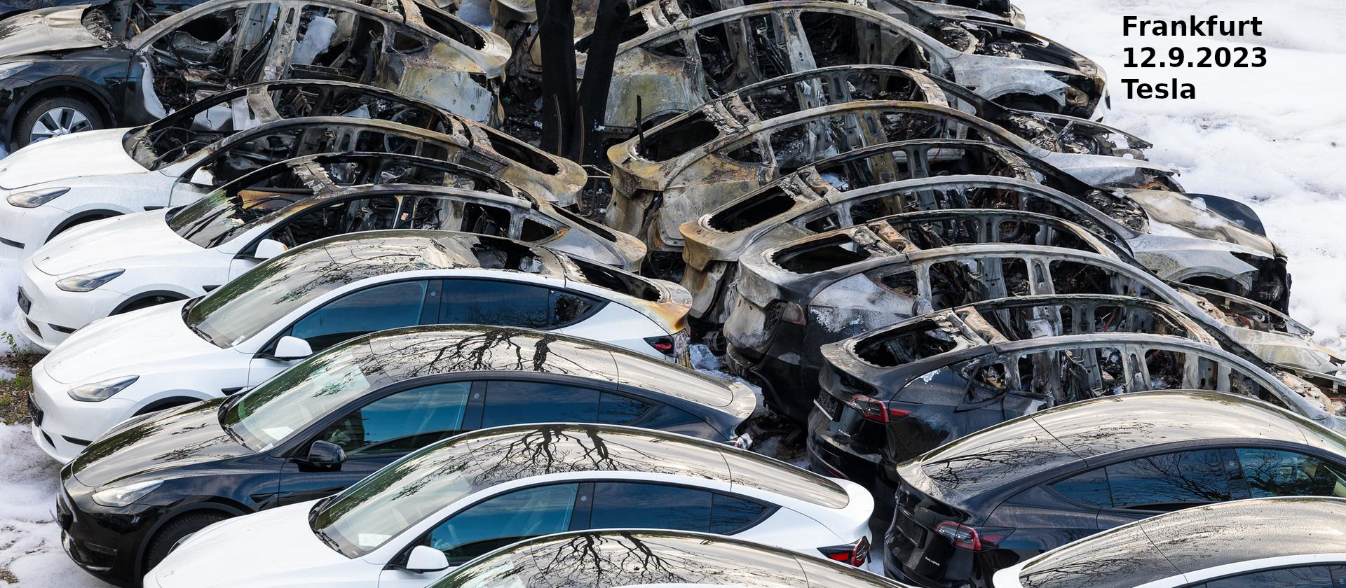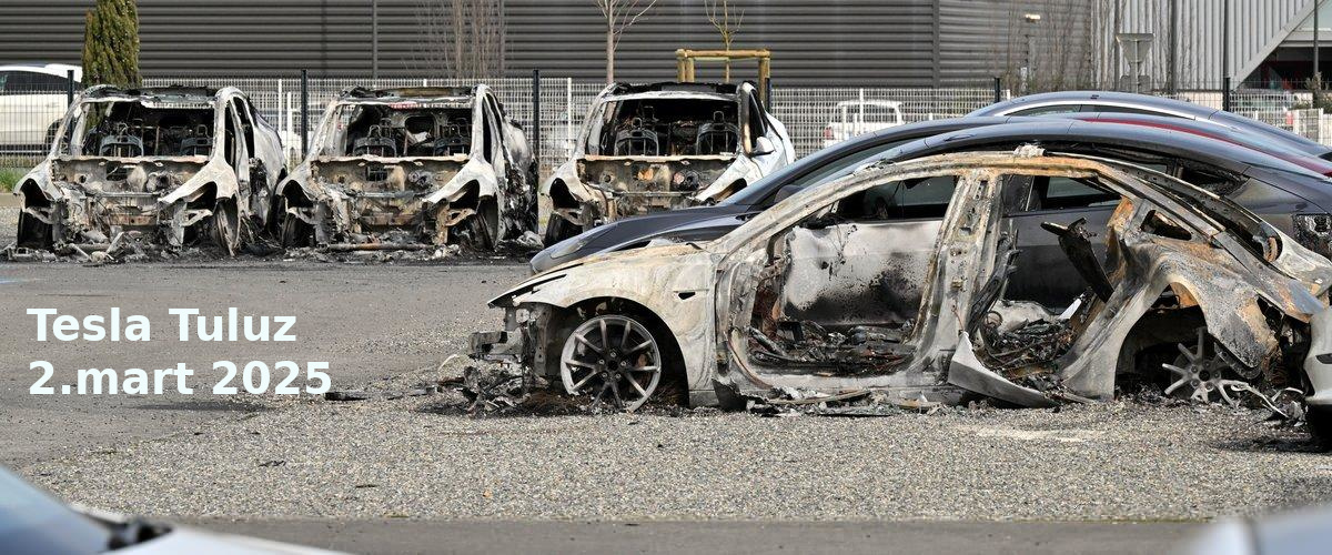 Druga bitna stvar koja se dešava ovih dana, Elon Musk i njegova proizvodnja Tesla automobila su naišli na medjunarodni otpor i protest protiv njegovog biznisa kojim finansira svoje fašističke ideje. Dakle, gradjani i aktivisti a ne samo anarhisti su se digli zadnjih dana protiv Tesla i Muska. CBC News je objavio vest 20 marta da je 80 Tesla automobila oštećeno i gume izbušene u Tesla zastupništvu automobila u Hamilton, Kanada. Policija u Montrealu je uspela da uhapsi dvojicu aktivista koji su pravili grafite na predstavništvo Tesla, klimatska grupa je preuzela odgovornost i pozvali su sve ljude u Kanadi da ustanu protiv Muska za koga kažu da uništava demokratiju i širi stav da ne postoje klimatske promene. 28 marta je izašla vest da je 4 Tesla cybertrucks spaljeno na parkingu u Sijetlu (SAD) a 26 marta da je prethodnih dana pucano na Tesla predstavništvo u gradu Tigard, u januaru i februaru je takodje pucano na Tesla u Salemu. U Berlinu je došlo do akcije anarhista koja je povezana sa Tesla. Naime, izdali su saopštenje da su 24 februara zapalili kontrolne kabine 2 krana gradjevinske firme Strabag a onda su zapalili kablove linije teretnih vozova da bi sprečili signal i zaustavili teretni saobraćaj blizu fabrike cementa. Strabag je poznat po izgradnji zatvora, rudnika, vetroparkova i brana a danas rade za Tesla, kompaniju koja predstavlja tehnokratski fašizam. Trump-Musk-Widel iz fašističke AfD partije su alijansa tehno-fašista koji daju lice novom patrijarhalnom i kolonijalnom totalitarizmu, od Starlinka do vojne logistike u ratovima, kamera na ulicama i uništavanja prirode, mrzimo Tesla i Muska. Svako ko vozi tesla auto podržava sve što radi Musk i AfD. 2 marta u Tuluzu u Francuskoj anarhisti su sa dva kanistera benzina zapalili nekoliko Tesla automobila što se može videti dole na slici.